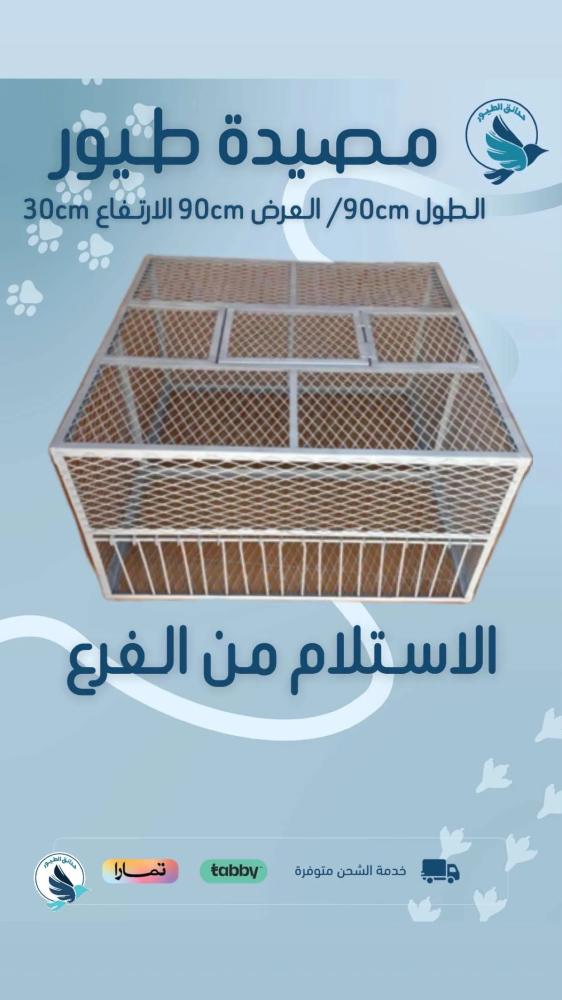 صيادة حمام معدنية متينة بمقاس 1×1 متر وارتفاع 30 سم، مصنوعة من الحديد وشبك بقلاوة عالي الجودة. مزودة بفتحة أمامية تدخل منها الطيور بسهولة ولا تستطيع الخروج، بالإضافة إلى باب علوي عملي يسهّل إخراج الحمام بعد الصيد. مثالية لصيد الحمام والطيور بطريقة فعالة وآمنة